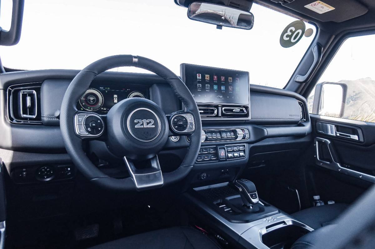 對于硬派越野車而言,全地形通過性是其核心競爭力之一。212 T01 柴油版在這方面的表現可圈可點,無論是參數還是實戰能力,都能滿足越野愛好者的嚴苛需求。從官方給出的數據來看,212 T01 柴油版擁有 40° 的接近角、36° 的離去角、235mm 的離地間隙以及 850mm 的涉水深度,搭配265/70 R17 HT 輪胎,這些數據在硬派越野領域都拿得出手。