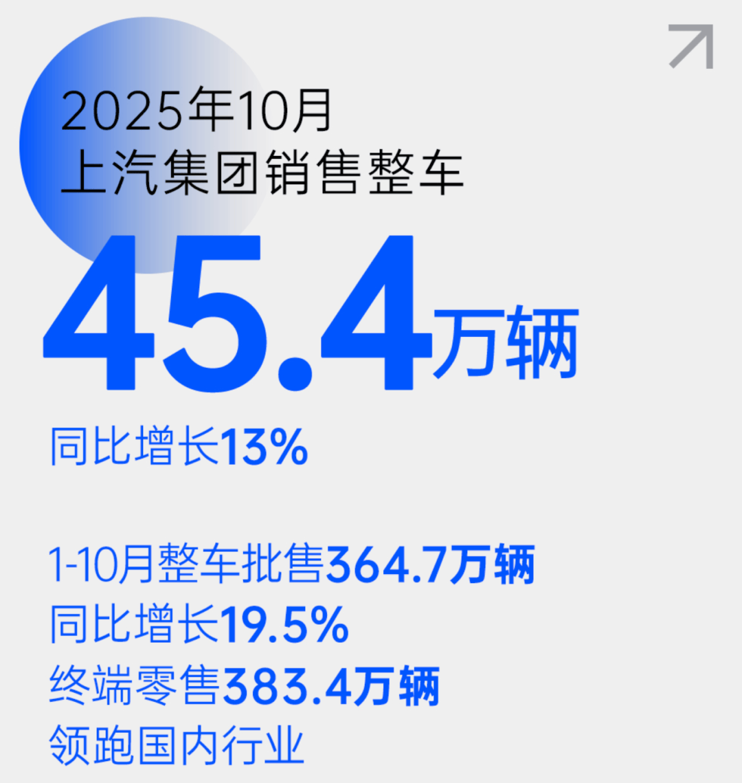 10月份銷量快報顯示,上汽集團當月銷售整車45.4萬輛,位列行業第一。自主品牌、新能源車與海外市場這“三駕馬車”的合力推動,上汽實現了月度銷量同比“十連漲”,充分展現出作為頭部車企的韌性與活力。