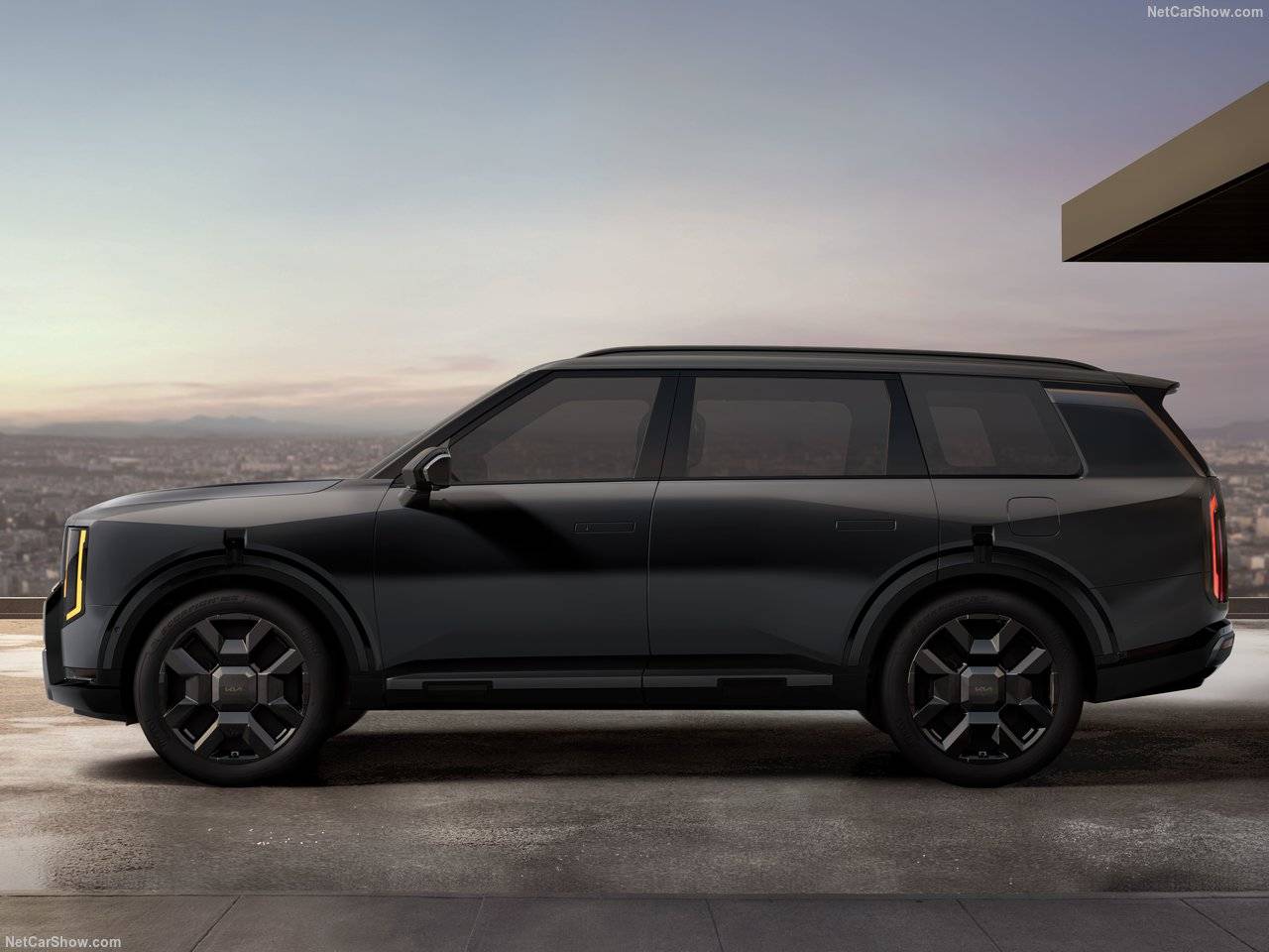隱藏水切、懸浮式車頂、寬闊D柱和隱藏門把手,是全新Telluride形似攬勝的部分,起亞沒有使用立體的腰線修飾,只是稍有下潛的頂部帶來運動感的強化。前后輪眉飾板上方有缺口,刻意斷開的感覺能引導視線上提,至于最大21英寸輪轂樣式則像是新能源風格。尾部比舊款更平直,豎立的尾燈和前燈組呼應,線條簡潔,后風擋面積寬大,后備箱應該是能夠兩段開啟,整體風格很有致敬的味道。