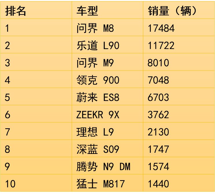 其中,最值得關注的是樂道L90,10月銷量11722輛,交付了17342輛新車,同比增長301.5%,在前五名中售價最低,官方指導價為26.58萬~29.98萬元。而異軍突起的原因也不難分析,又大又便宜,“可充可換可升級” 的能源體系又解決用戶的里程焦慮問題。而智己LS9的產品力同樣圍繞這些家庭出行核心需求,在空間、動力、智能、底盤等關鍵維度實現均衡突破,依托上汽70余年造車底蘊形成了一定程度上的差異化優勢。