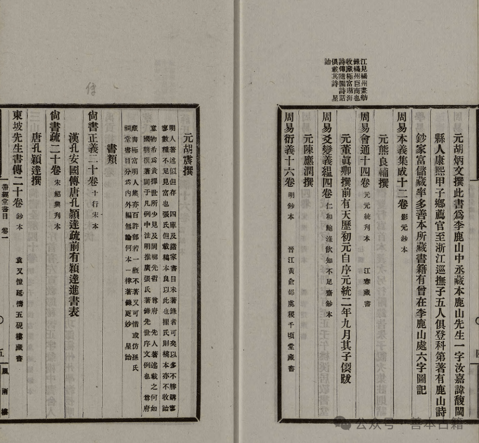 《帶經堂書目》有時也著錄版刻圖記和收藏印記,這在古代書目中是不多見的。如卷一《春秋繁露》十七卷下著錄:“蘭雪堂活字本。漢董仲舒撰,末有蘭雪堂華堅活字板印行圖記”。對藏書來源也作著錄。如卷一《水村易鏡》下著錄:“舊鈔本。吳門黃蕘圃士禮居藏書。”